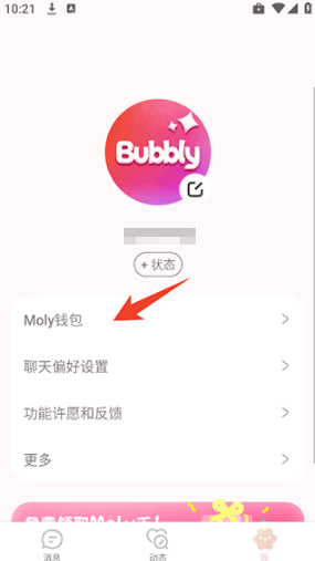 4、接著就可以在Bubbly app查看同步過來的Moly錢包,以及AI角色信息