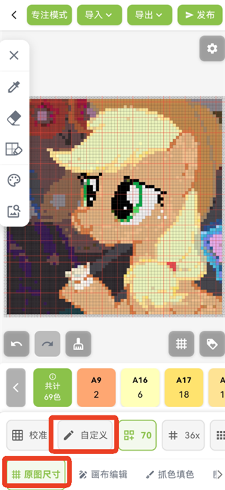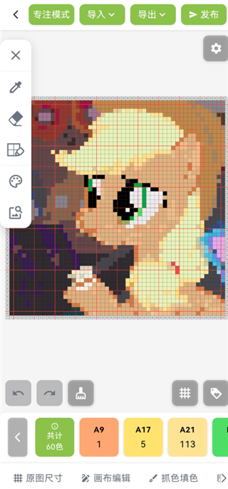 5、頌拼豆App會(huì)自動(dòng)生成像素圖紙,這里不建議使用自動(dòng)生成的圖紙,會(huì)有很大的色差。
