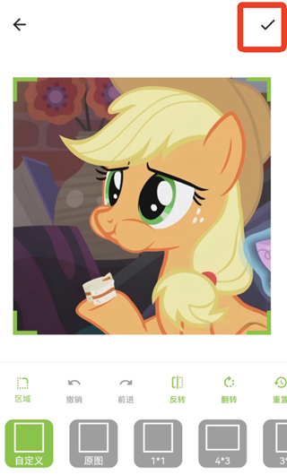 4、導(dǎo)入圖片后你可以先編輯圖片,改變圖片的比例、反轉(zhuǎn)等,弄好后點(diǎn)擊右上角的【√】。