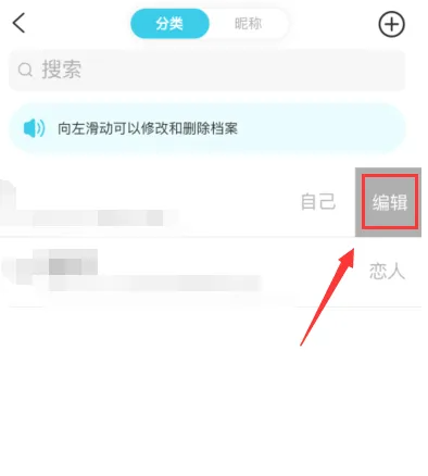 2.找到自己檔案,左滑后,可以看到編輯,我們點(diǎn)擊一下。