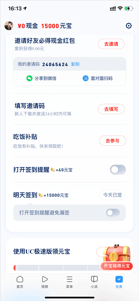1、在用戶(hù)完成賬號(hào)登錄后,在底部的“任務(wù)”欄里可以領(lǐng)現(xiàn)金。