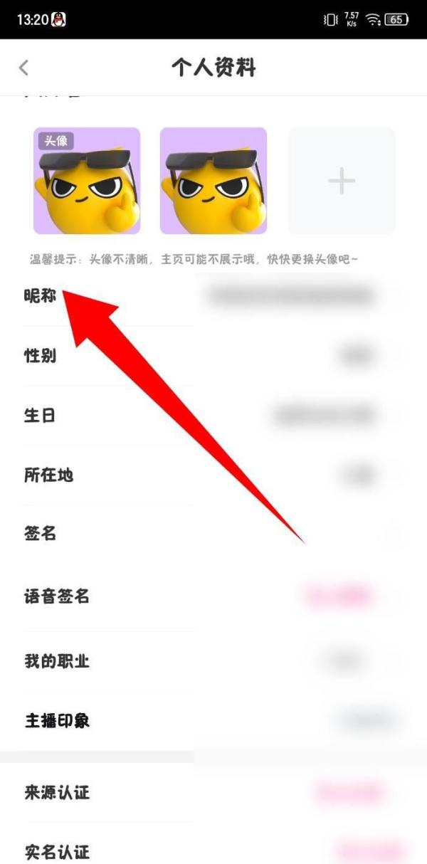 3.在個(gè)人資料編輯頁(yè)面中,會(huì)顯示各種個(gè)人信息選項(xiàng),如頭像、昵稱、性別等。找到“昵稱”選項(xiàng),并點(diǎn)擊它,進(jìn)入昵稱修改頁(yè)面。