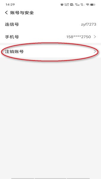 3.接著點(diǎn)擊“注銷賬號”,連信號和手機(jī)號不用管;