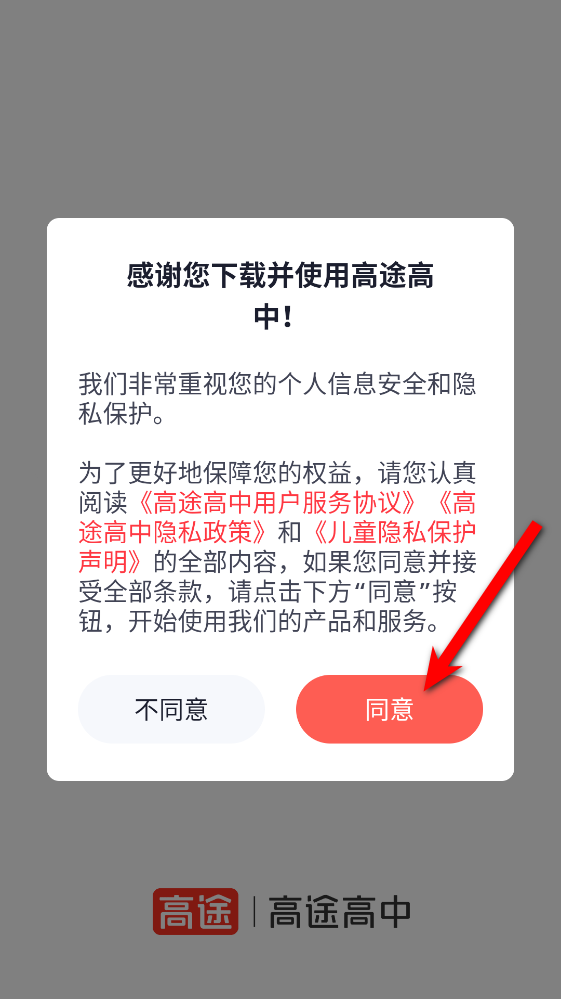 1.打開高途高中app之后,首先需要點擊同意隱私保護。