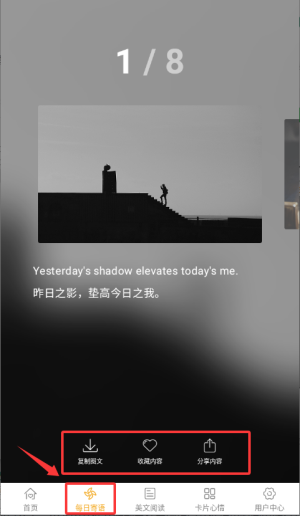 3.點擊底部每日寄語,選擇心儀語錄后可通過復制圖文等功能保存分享。