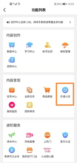 2、依次找到并點(diǎn)擊“全部分類(lèi)”、“開(kāi)通小店”;