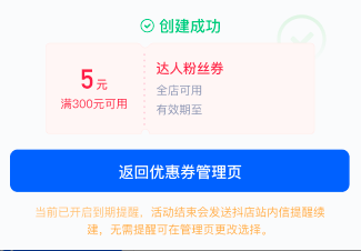 顯示“創(chuàng)建成功”即活動(dòng)生效