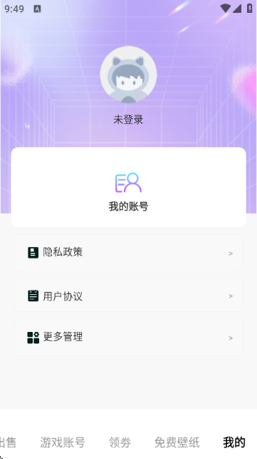 7.最后點擊底部“我的”選項,進入個人中心頁面,可進行登錄、查看隱私政策、用戶協(xié)議及更多賬戶管理操作。