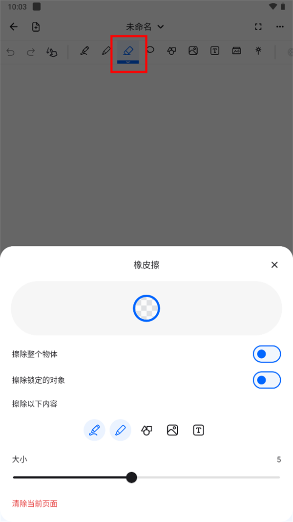 您還可以調(diào)整可擦除對(duì)象的類型,默認(rèn)情況下只有鋼筆和熒光筆塊可擦除。