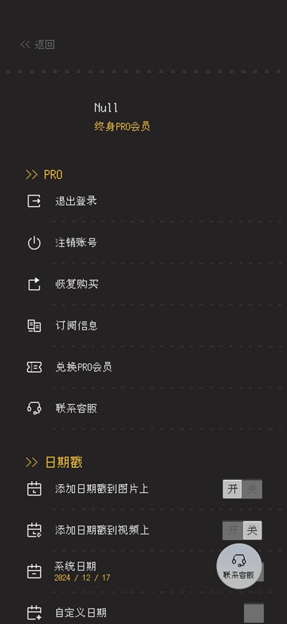 4、點(diǎn)擊首頁中右邊的設(shè)置圖標(biāo),用戶可自定義設(shè)置時(shí)間戳和拍照設(shè)置。