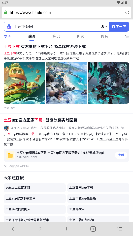 1.打開B瀏覽器后,默認的首頁會自動加載,方便你立即開始瀏覽。