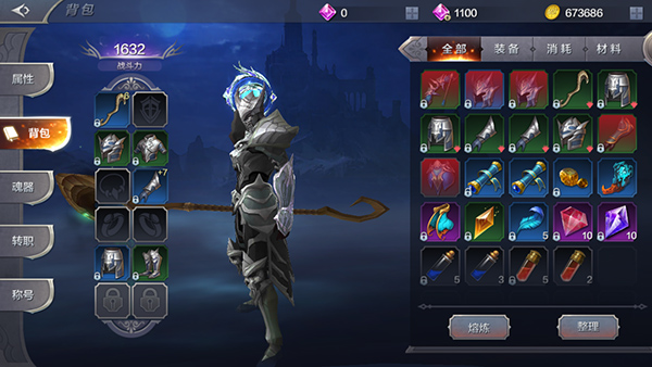 游戲中角色擁有十個(gè)可裝備欄,分別是:?jiǎn)问治淦、副手武器、?xiàng)鏈、戒指(左)、戒指(右)、頭盔、鎧甲、護(hù)手、護(hù)腿以及鞋子,其中如果角色使用的是雙手武器,那么不可裝備副手武器