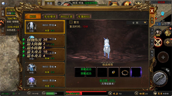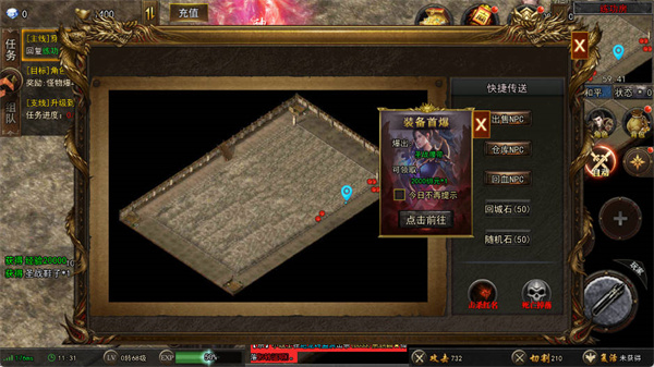 所有野外地圖進(jìn)入無限制,所有怪物都能爆裝備,地圖等級(jí)越高,爆的裝備越好!