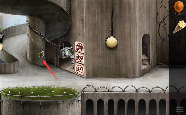 17、繼續(xù)向右走進入下一個場景,點擊圖中位置的鐵鏈獲得鐵鏈道具。